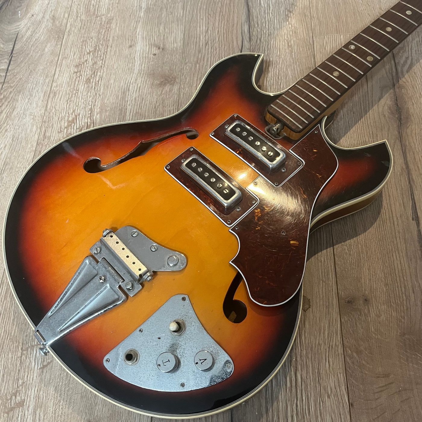 Most of them will need re-wiring and a fair bit of love. But there are some cool guitars amongst this lot for the creative mind to bring back to life.